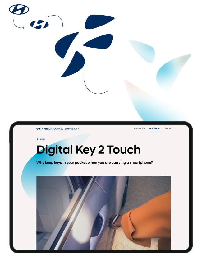 - Entwicklung eines visuellen Brandings für Hyundai Connected Mobility, das die innovative, kollaborative und progressive Kultur von Hyundai Connected Mobility innerhalb der Markenleitplanken der Hyundai Motor Group vermittelt