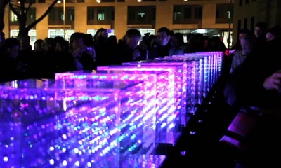 Die digitale Lichtinstallation „Puls der Stadt“ macht den Herzschlag von Frankfurt sichtbar. Gemessen wird er an den digitalen Schlagadern der Metropole: den Online-Daten zum Flugverkehr, den Börsennotierungen, der Verkehrsdichte, Konversationen in sozialen Netzwerken et cetera. Die aufgezeichneten Daten der vergangenen 24 Stunden steuern Abend für Abend 16 LED-Kuben, die den Puls der Stadt in dreidimensionalen Animationen sicht- und hörbar machen. Ein urbanes Lagerfeuer, welches das pulsierende Leben der Stadt zeigt.